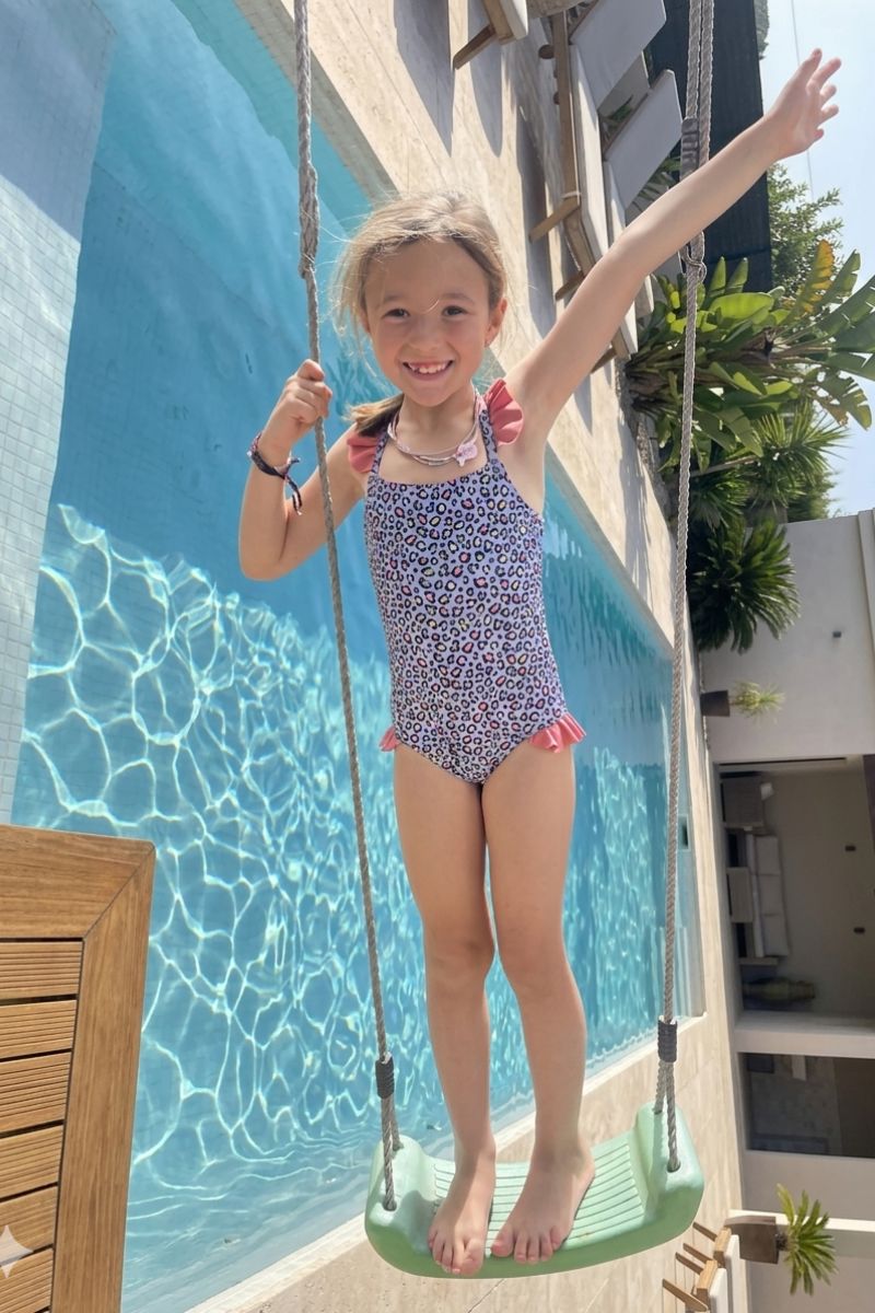 Nuestro Bañador Morado Caprisa con estampados leopardo de color morado con más colores se ha realizado en colaboración con la marca infantil Sophie Moda Infantil. Junto a esta marca hemos desarrollado una colaboración para que puedas ir a juego con los más peques de la casa.