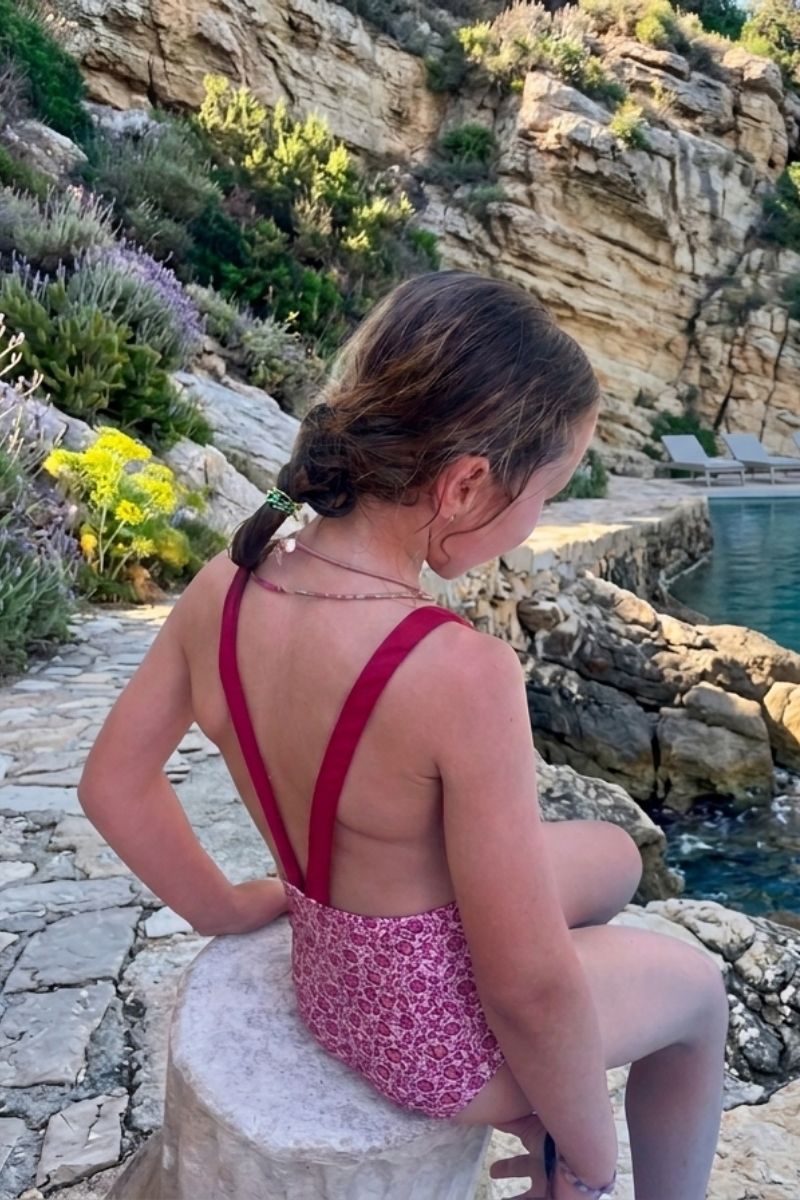 Nuestro Bañador Niña Nereo con estampados flores de color burdeos y rosa se ha realizado en colaboración con la marca infantil Sophie Moda Infantil. Junto a esta marca hemos desarrollado una colaboración para que puedas ir a juego con los más peques de la casa.